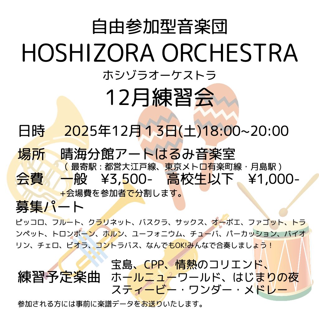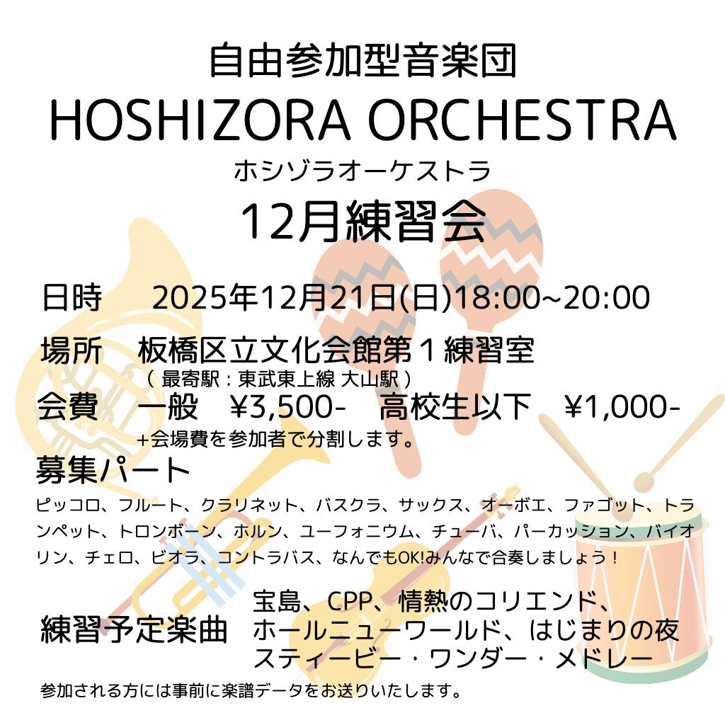 ホシゾラオーケストラ練習会スケジュール12月、1月、2月2025.11.15更新